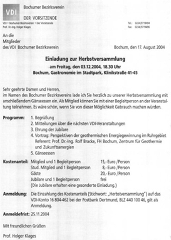 Festvortrag von Prof. Dr.·lng. Rolf Bracke, FH Bochum, Zentrum für Geothermie und Zukunftsenergien