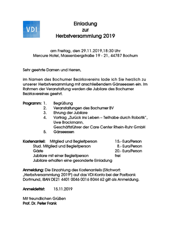 Folgende Mitglieder gehören dem VDI seit 50 Jahren an: